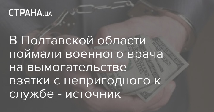 В Полтавской области задержали члена военно-врачебной комиссии за вымогательство и получение взятки в размере 4 000 долларов.