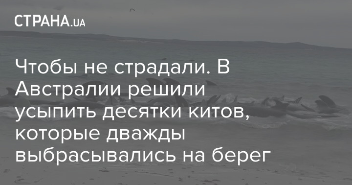 В Австралии киты-лоцманы дважды выбрасывались на мель, и во второй раз застряли на побережье. Служба охраны дикой природы решила усыпить 43 особи, чтобы не продлевать их страдания.