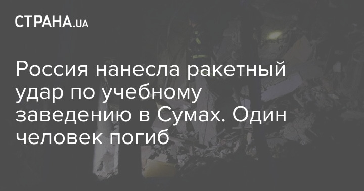 В Сумах после вчерашнего ракетного удара РФ по учебному заведению один человек погиб, еще пять получили ранения. Разрушен один из корпусов учебного заведения.