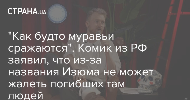 "Когда эти города называли, вообще не готовились к тому, что там будет война... Когда я слышу фразу "три дня идут бои за Изюм", я не так сопереживаю этому. Как будто там муравьи сражаются. А ведь там люди гибнут", - заявил стэндап-комик.