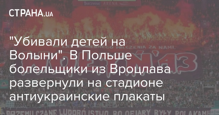 На одной из игр польской футбольной премьер-лиги болельщики из Вроцлава развернули антиукраинские плакаты.