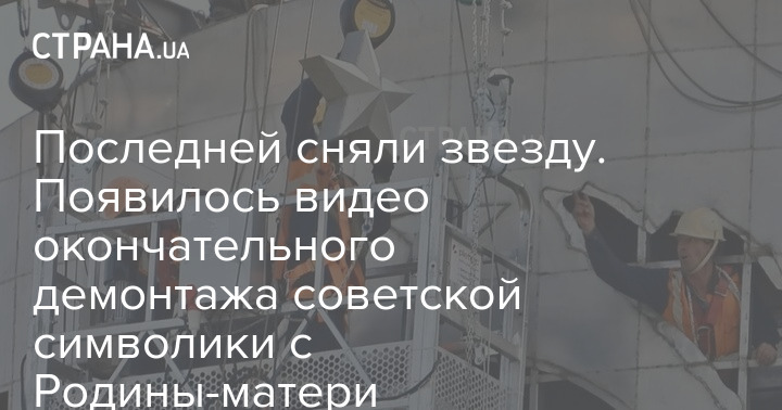 Последней сняли звезду. Появилось видео окончательного демонтажа советской символики с Родины-матери