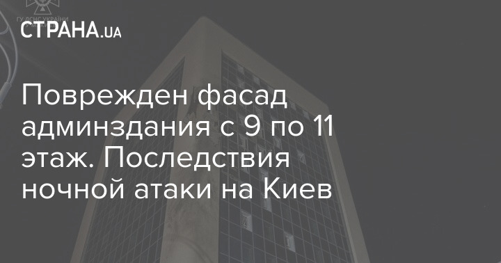 Поврежден фасад админздания с 9 по 11 этаж. Последствия ночной атаки на Киев