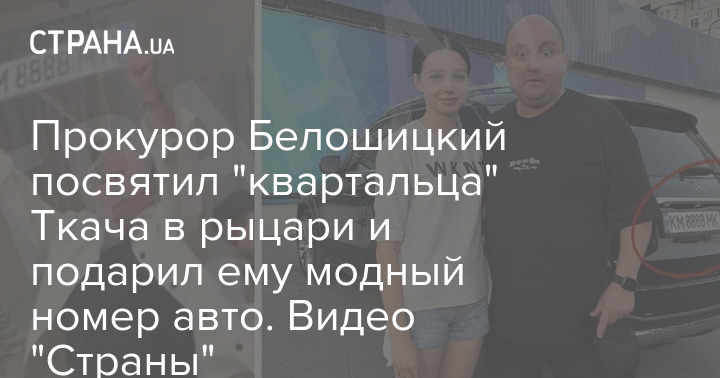 В распоряжении "Страны" оказалось видео вечеринки с участием руководителей прокуратуры Житомирской области и известного актера-комика "95-го квартала" Юрия Ткача. Прокурор Житомирской области Александр Белошицкий сначала "посвятил" Ткача в рыцари, а затем подарил ему номерные знаки с четырьмя восьмерками "КМ 8888 МК".