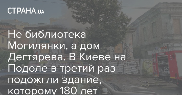 В четверг, 3 августа, в Киеве на Подоле загорелась не Американская библиотека Национального университета "Киево-Могилянская академия", а историческое здание - дом Дегтярева, которому 180 лет.