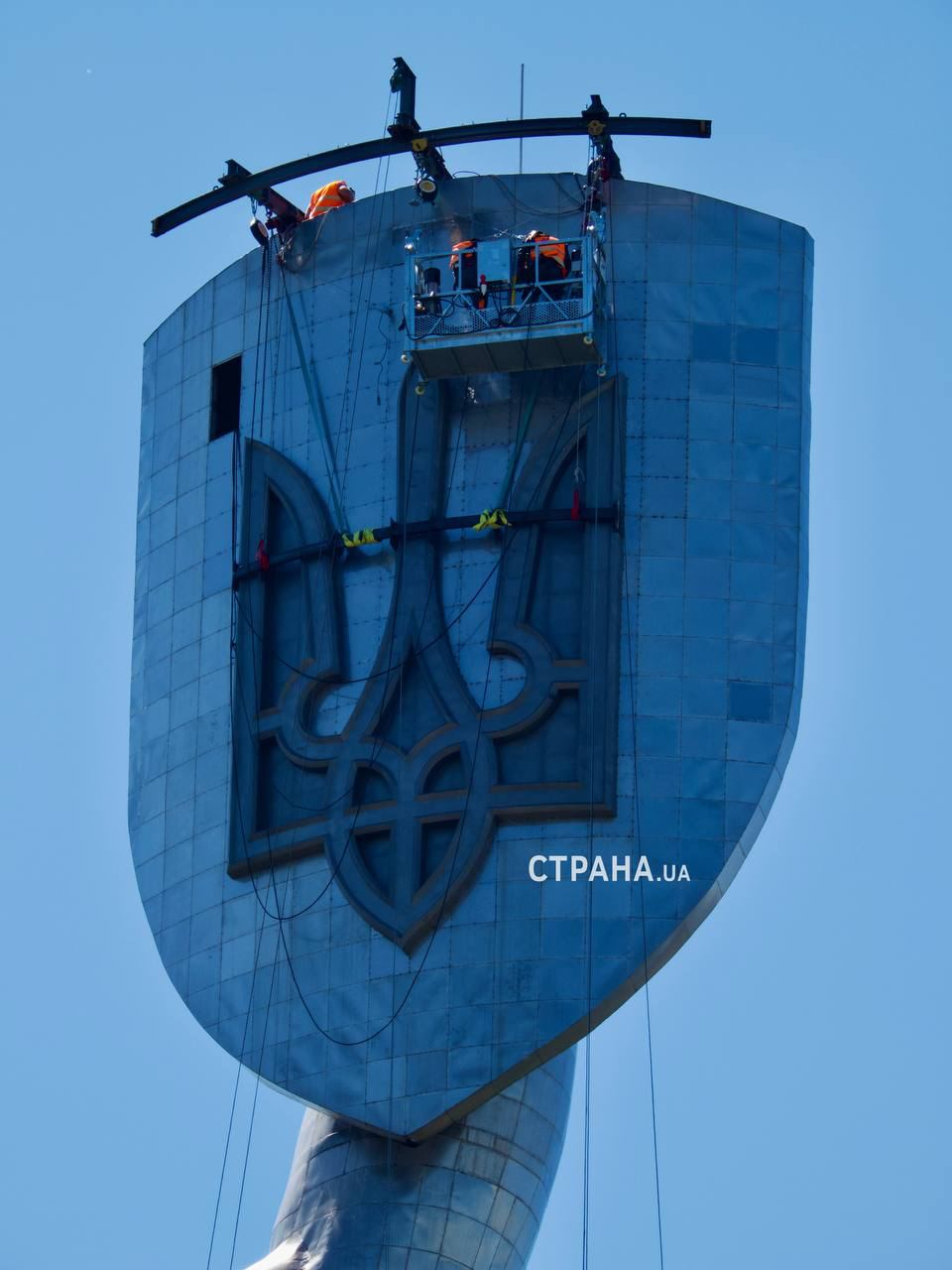 Монтаж тризуба на монументе "Родина-мать" в Киеве завершен. Фото