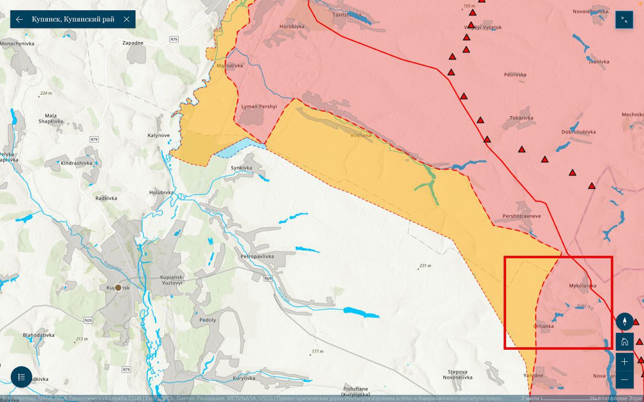 А российские блогеры утверждают, что захвачен рубеж от Синковки до Петропавловки, и войска РФ оказались в 7 километрах от Купянска, однако "визуального подтверждения этих утверждений ISW не наблюдал".