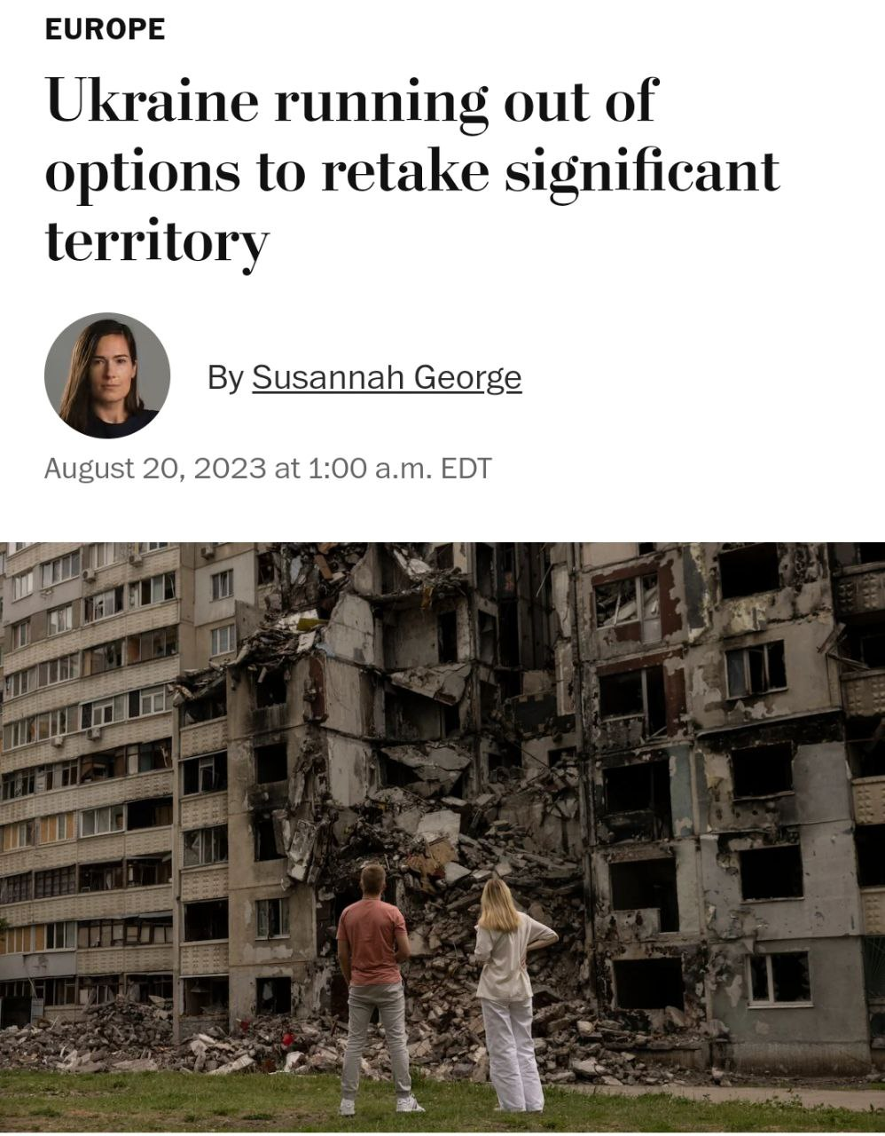 Washington Post пишет, что у Киева "заканчиваются варианты", поскольку "контрнаступление застопорилось"