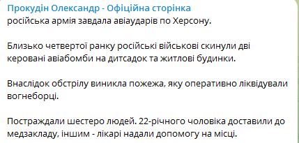 Прокуратура публикует фото после утреннего авиаудара РФ по Херсону.