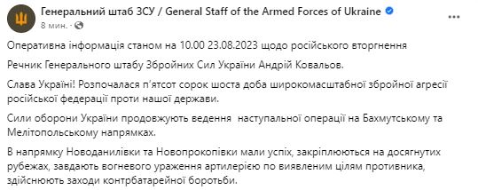 Война в Украине идет уже 546-й день. Мы следим за последними новостями и ключевыми событиями 23 августа 2023 года в онлайне .
