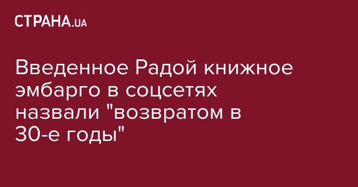 Введенное Радой книжное эмбарго в соцсетях назвали "возвратом в 30-е годы"