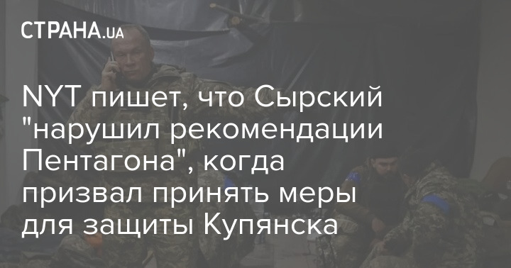 Глава Сухопутных войск Александр Сырский "нарушил рекомендации Пентагона", когда призвал принять меры для защиты Купянска.