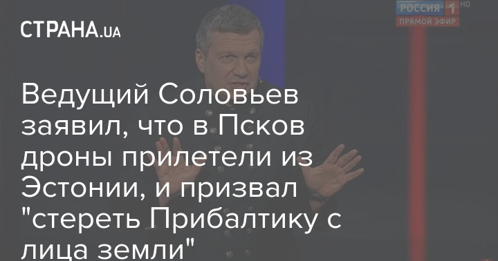 Ведущий Соловьев заявил, что в Псков дроны прилетели из Эстонии, и призвал "стереть Прибалтику с лица земли"