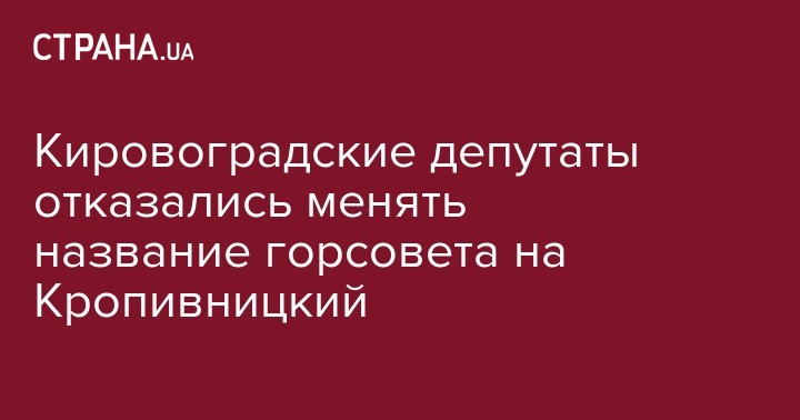 В четверг, 8 декабря депутаты пока еще Кировоградского городского совета не поддержали переименования своего места работы в Кропивницкий горсовет. Об этом сообщает 112 Украина.