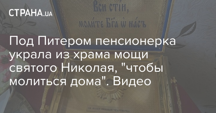 Под Питером пенсионерка украла из храма мощи святого Николая, "чтобы молиться дома". Видео