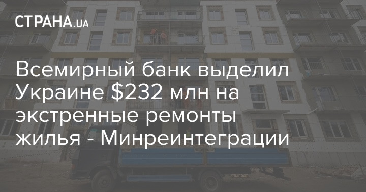 Всемирный банк выделил Украине 232 млн долларов на восстановление жилых домов, пострадавших от российских обстрелов.