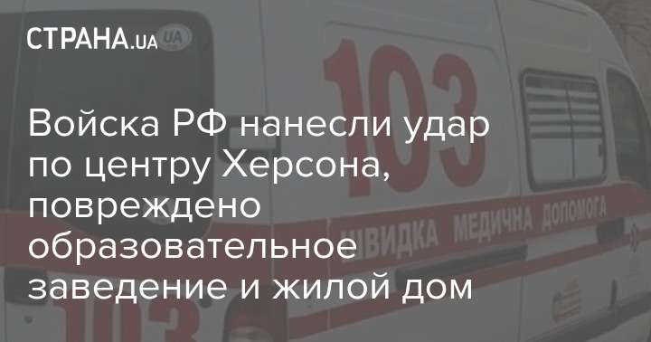 Сегодня утром российские войска ударили по центру Херсона. В результате обстрела получили повреждения образовательное заведение и жилой дом. Пострадала женщина.