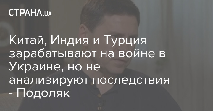 Китай, Индия и Турция зарабатывают на войне в Украине, но "имеют слабый интеллектуальный потенциал" и "не анализируют последствия своих шагов".
