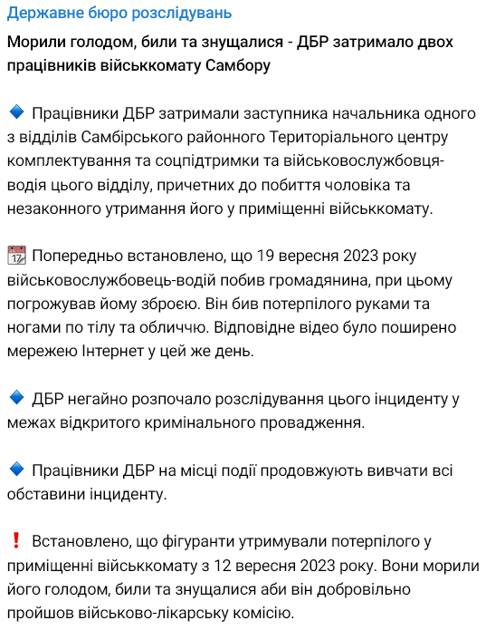 ГБР расследует избиение мужчины военкомами. Фото: dbr.gov.ua