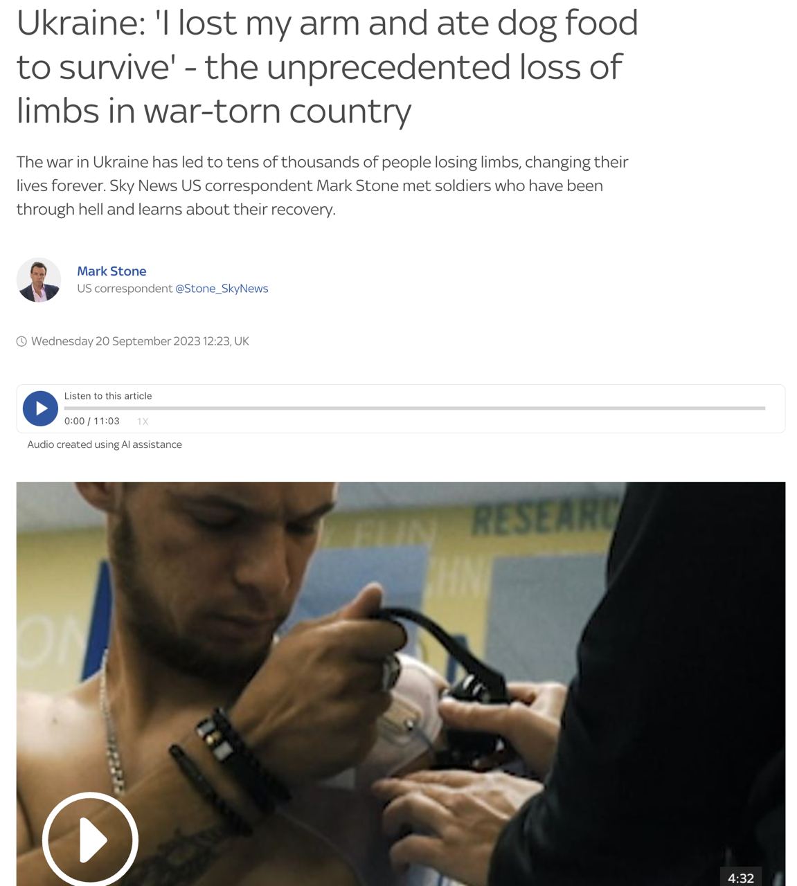 Sky News отмечает, что за 18 месяцев войны в Украине как минимум в 10 раз больше солдат подверглись ампутации конечностей, чем за 20 лет войны американцев в Ираке и Афганистане.