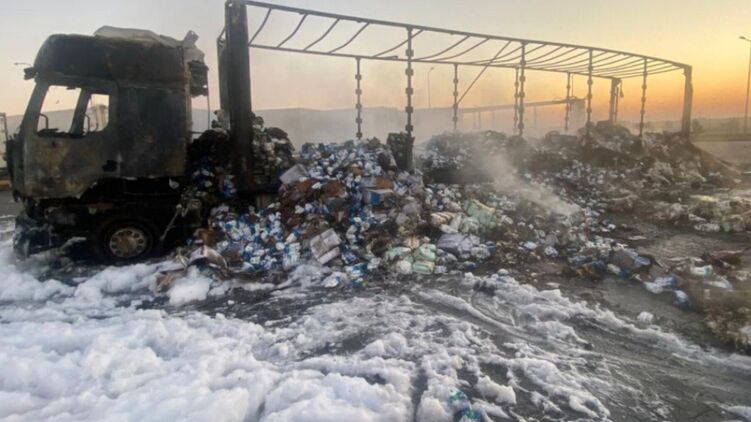 Сгоревшие фуры находились в зоне ожидания на КПП во время прилета.
