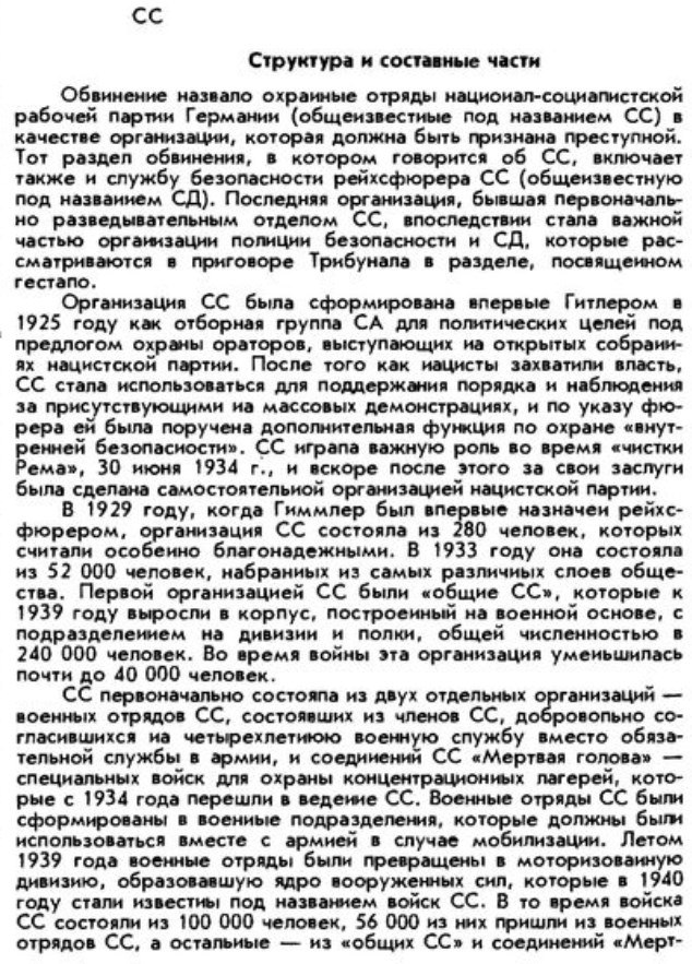 В то же время, как можно увидеть из текста приговора, в этом вердикте осуждается вся СС как организация, без деления на составные части.