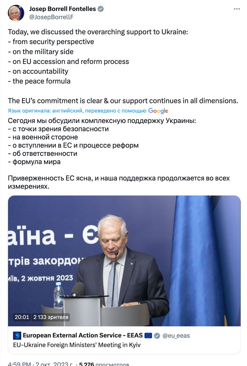 Об этом сообщил на пресс-конференции по итогам мероприятия верховный представитель ЕС по иностранным делам и политике безопасности Жозеп Боррель.