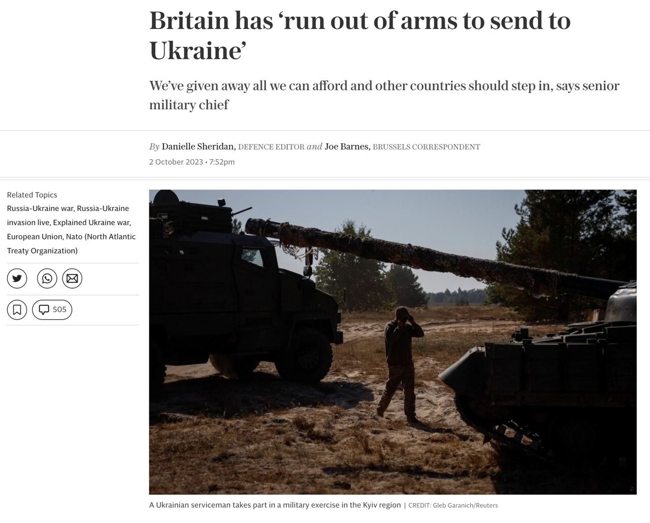 СМИ пишут, что у Британии закончилось оружие для отправки в Украину