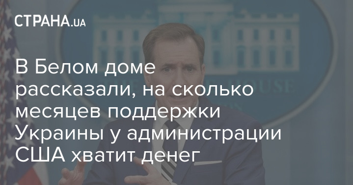 В Белом доме рассказали, на сколько месяцев поддержки Украины у администрации США хватит денег