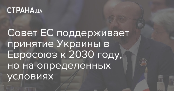 Президент Совета Евросоюза Шарль Мишель поддерживает вступление Украины к 2030 году, но при определенных условиях.