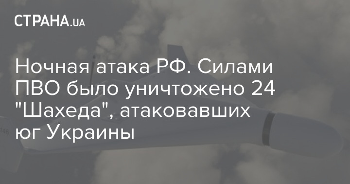 Ночная атака РФ. Силами ПВО было уничтожено 24 "Шахеда", атаковавших юг Украины