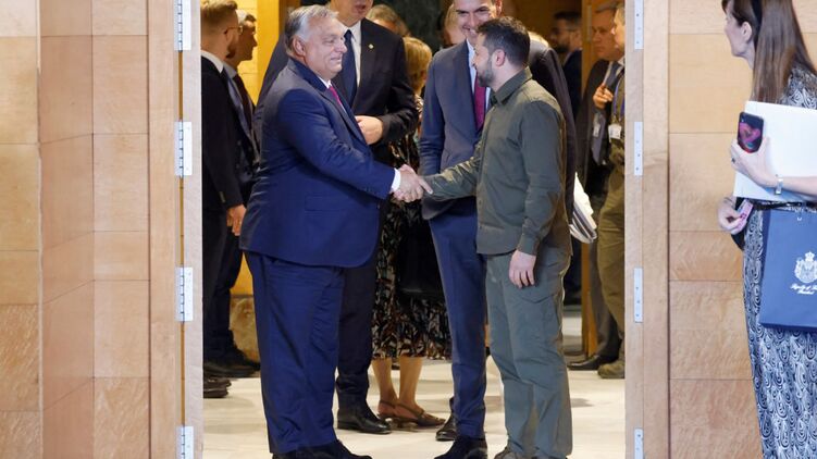 Премьер-министр Венгрии Виктор Орбан обменялся несколькими словами с украинским президентом Владимиром Зеленским во время встречи Европейского политического сообщества в испанской Гранаде.