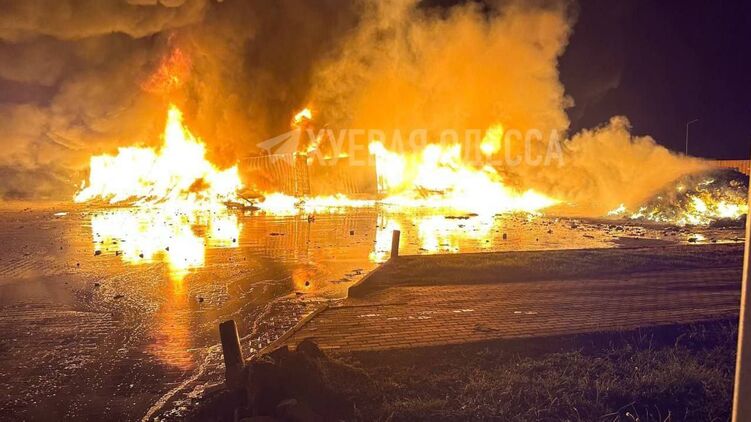 В сети публикуют фото и видео последствий ночной атаки дронов по Орловке в районе Рени. На них видны горящие фуры.