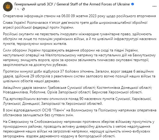 Утром 9 октября Генштаб ВСУ обнародовал сводку о ситуации на фронте.