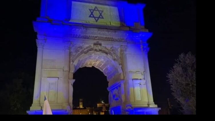 В итальянской столице Риме в поддержку Израиля подсветили Триумфальную арку императора Тита. Ее построил император Домициан вскоре после смерти Тита в 82 году в память о жестоком подавлении иудейского восстания и взятии Иерусалима римлянами в 70 году н. э.