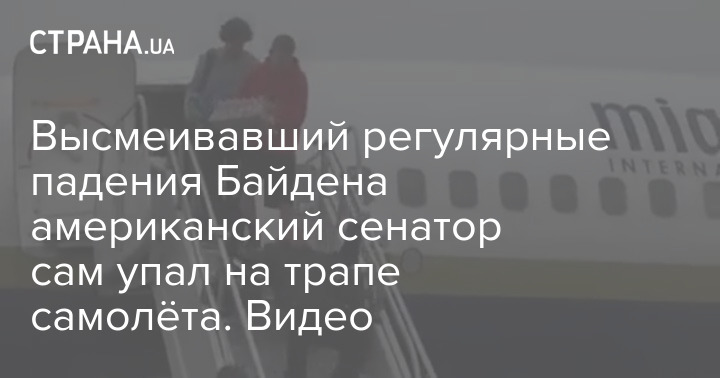 Высмеивавший регулярные падения Байдена американский сенатор сам упал на трапе самолёта. Видео