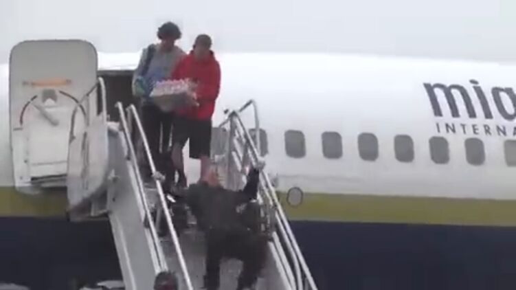 На кадрах можно заметить, что Тайбервилл не просто упал, а проехался спиной по всей лестнице, пока его не "поймали" сотрудники аэропорта, дежурившие у трапа.