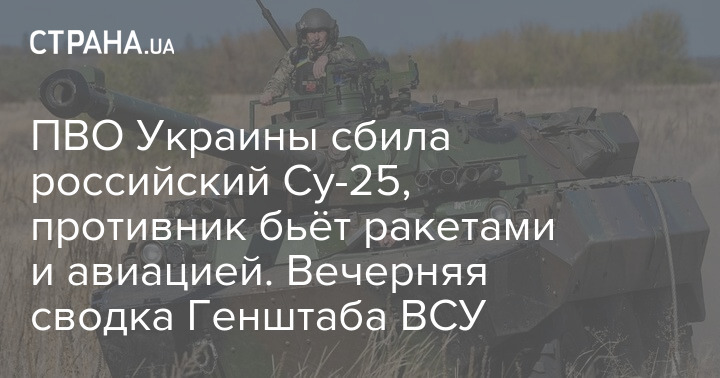 ПВО Украины сбила российский Су-25, противник бьёт ракетами и авиацией. Вечерняя сводка Генштаба ВСУ