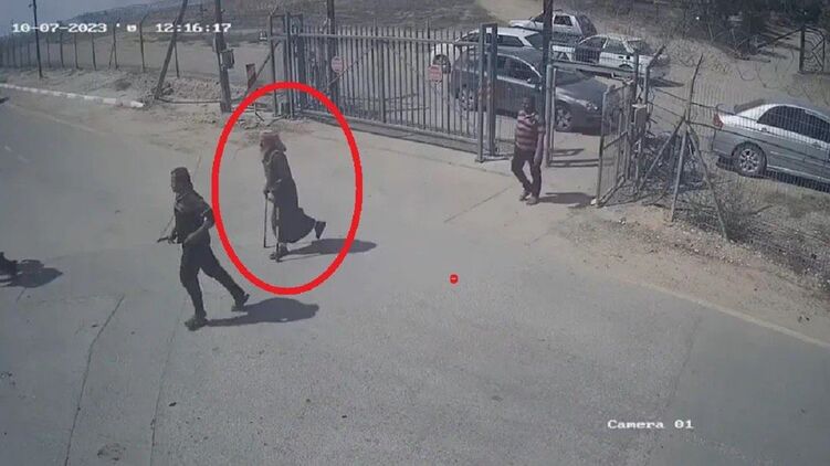 На одном из кадров записи с камер уличного наблюдения за 7 октября виден старик на костылях.