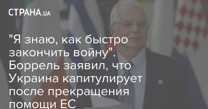 "Я знаю, как быстро закончить войну. Если я перестану поддерживать Украину, это закончится капитуляцией украинцев. Разве мы хотим, чтобы война закончилась именно так? Я думаю, что нет. Мы не можем позволить Путину поставить марионеточное правительство в Киеве и иметь российскую армию на польской границе", - заявил Боррель.