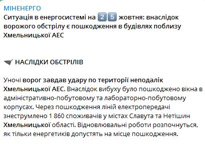 Ночной удар по Хмельницкой области пришелся по территории рядом с АЭС