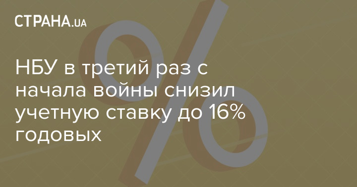 НБУ в третий раз с начала войны снизил учетную ставку до 16% годовых