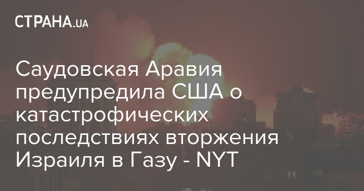 Саудовская Аравия предупредила США о катастрофических последствиях вторжения Израиля в Газу - NYT