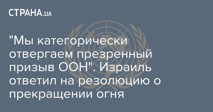 Израиль отверг призыв Генеральной ассамблеи Организации Объединённых наций (ООН) к  немедленному прекращению огня в секторе Газа.