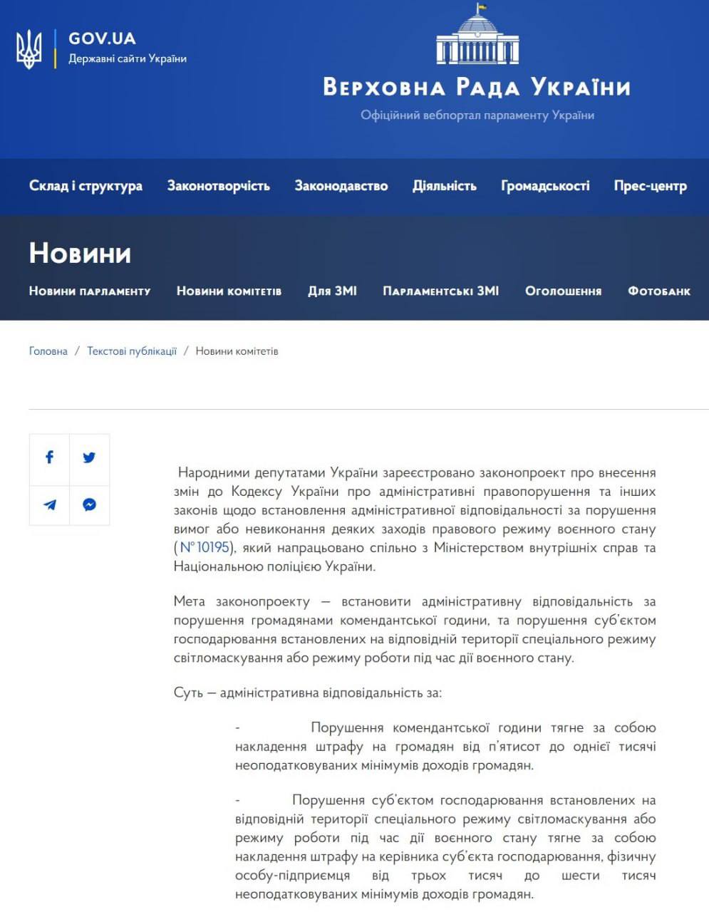 Верховная Рада зарегистрировала законопроект об установлении административной ответственности за нарушение комендантского часа.