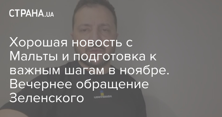 Хорошая новость с Мальты и подготовка к важным шагам в ноябре. Вечернее обращение Зеленского