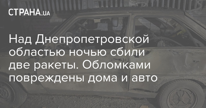 Сегодня ночью над Днепропетровской областью сбили две ракеты. Обломки рухнули в Днепровском районе. Там повреждены пятиэтажка, частный дом и автомобиль.