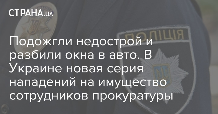 Подожгли недострой и разбили окна в авто. В Украине новая серия нападений на имущество сотрудников прокуратуры