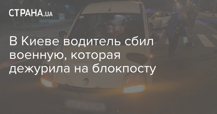 В Киеве вчера вечером в очередной раз сбили военного на блокпосту. Водитель автомобиля "Рено" совершил наезд на сотрудницу пограничной службы, которая несла службу на блокпосту и переходила проезжую часть по пешеходному переходу.
