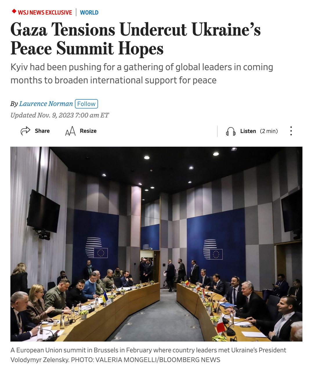 Война Израиля с ХАМАС "подрывает надежды Украины на мирный саммит".